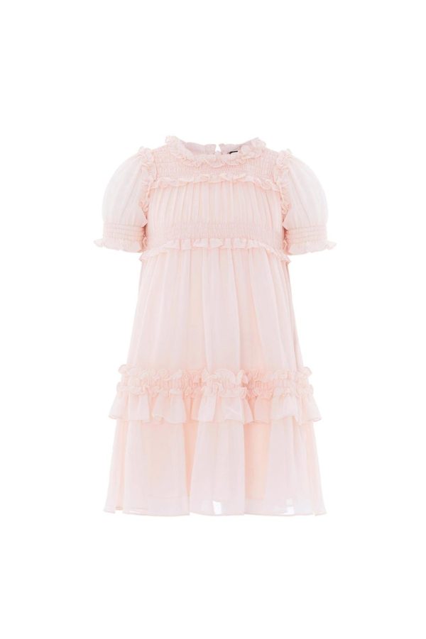 NEW SEASON. The Emilia Georgette Kids Dress in Opal. A light and flowy silhouette crafted in delicate georgette. With gentle shirring at the waist and sleeves,this piece is perfect for flower girls or any special event. Style with the matching women’s Emilia Crepe Dress for a sweet family matching moment.
