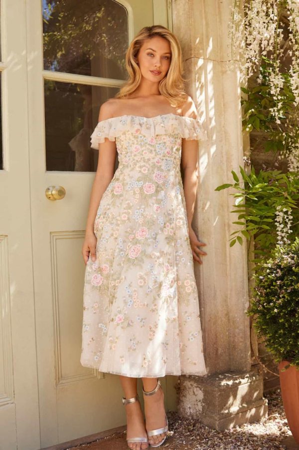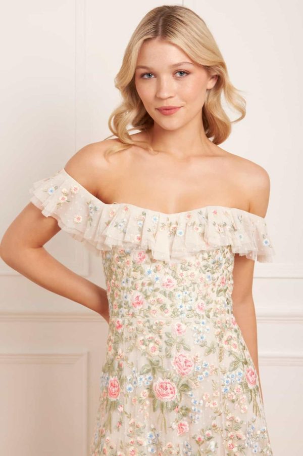 Women/Kids Needle & Thread Embroidered Dresses | Antoinettes Floral Off-Shoulder Ballerina Dress Champagne
