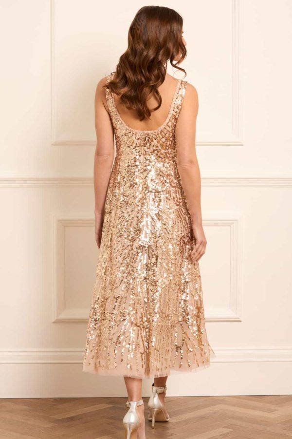 The Marquet Scoop Neck Ballerina Dress in Parchment/Metallic,inspired by the 1900s French ballet La Papillon,features a glittering butterfly design that fades towards the hem. With an elegant scoop neckline and signature Needle & Thread frill,the layered soft tulle skirt adds a romantic touch. Make this your new wardrobe favourite.