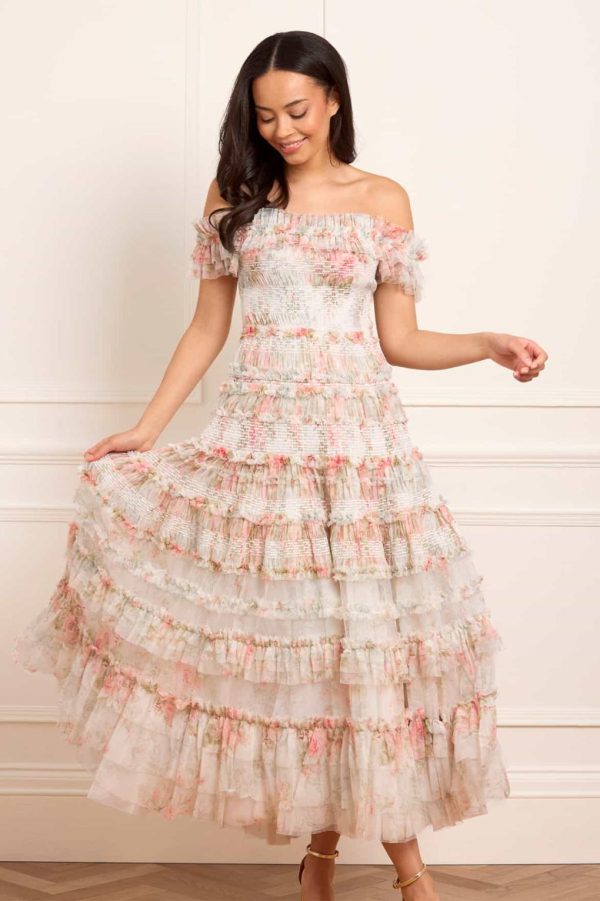 Women/Wedding Needle & Thread Printed Dresses | Madame Rose Elodie Off-Shoulder Ankle Gown Multi